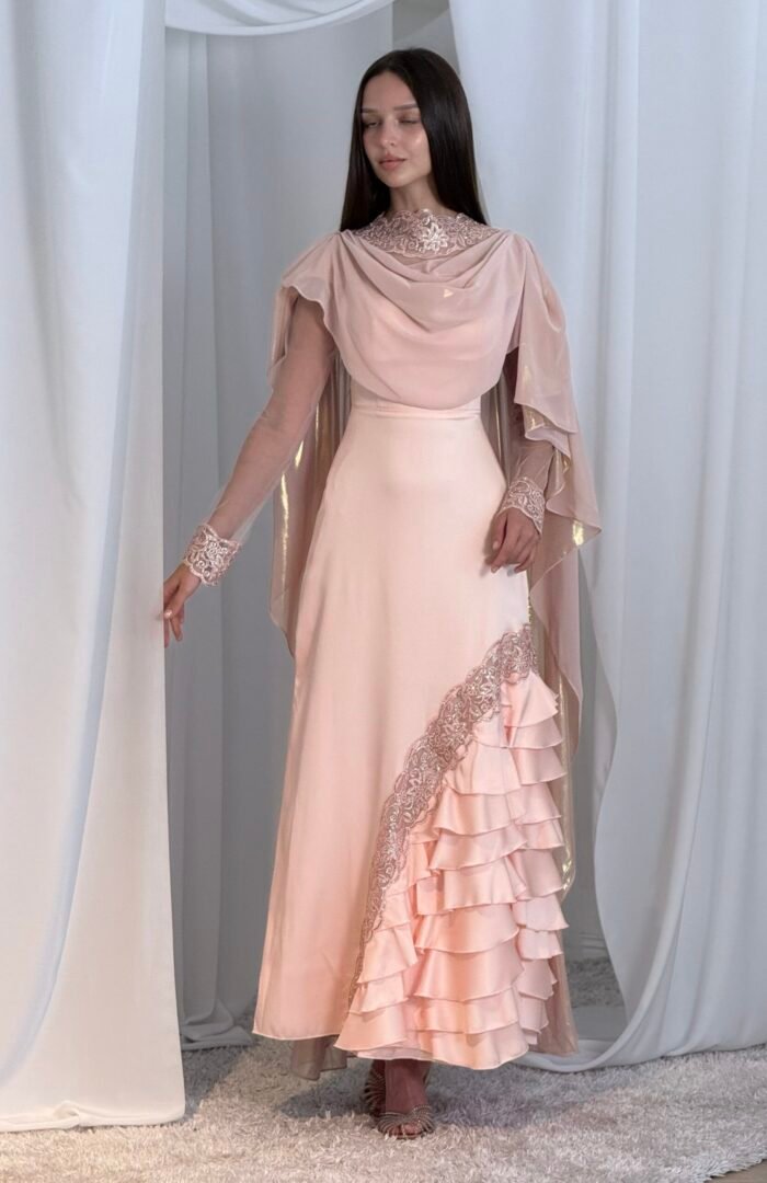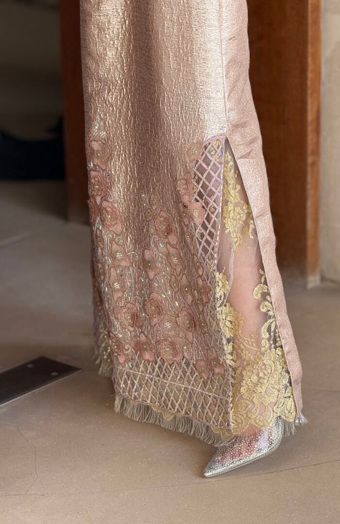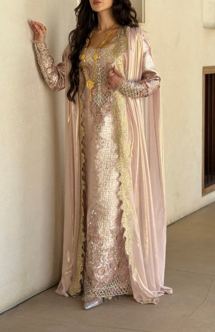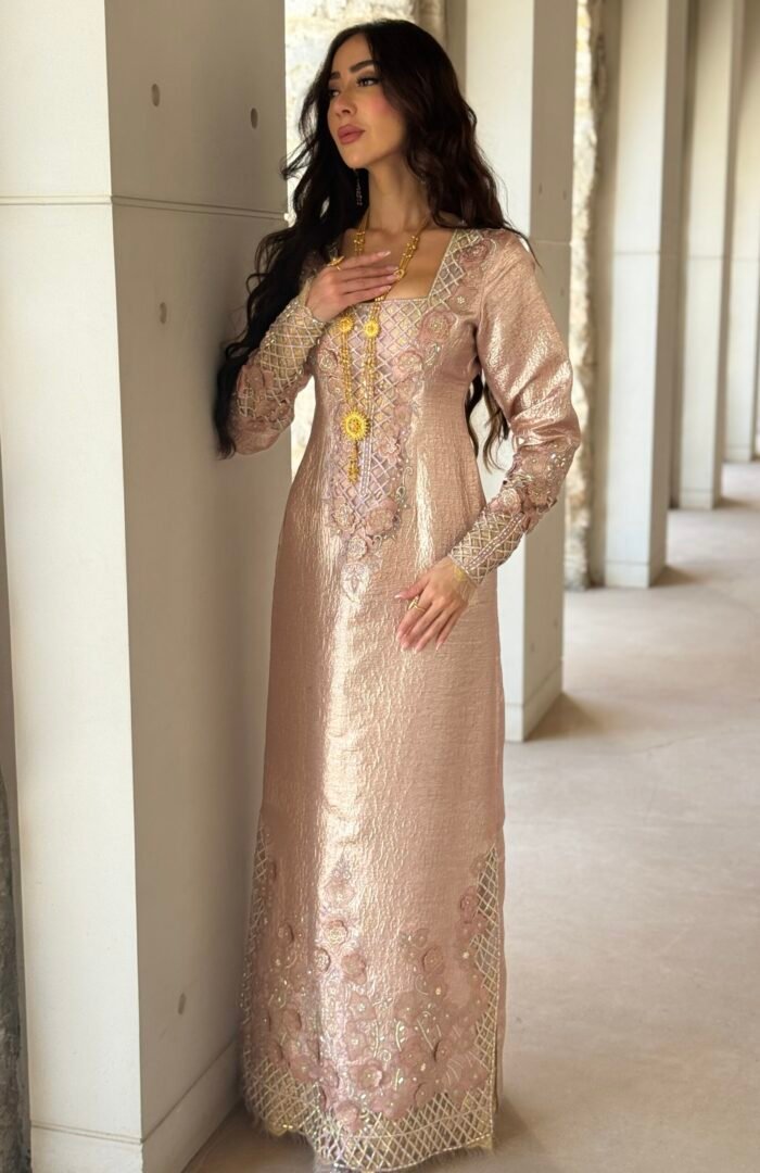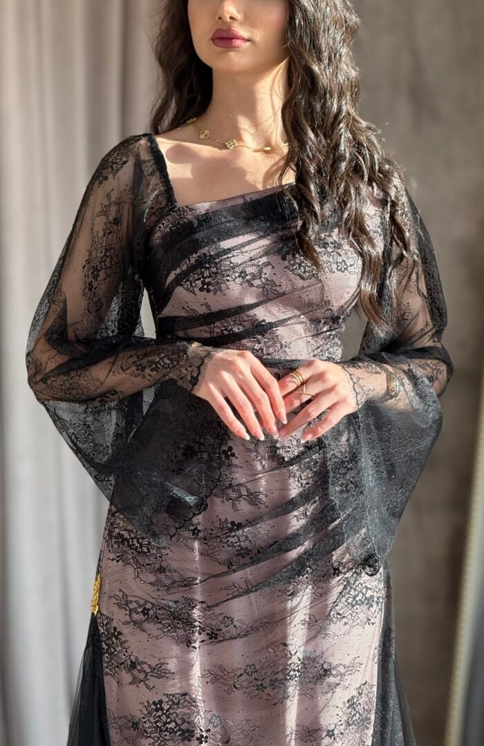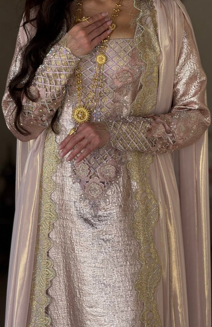 Special Edition ثوب مودرن من قماش البروكار والدانتيل الفرنسي الذهبي وعباية من الشيفون متداخله مع الدانتيل الفرنسي شغل مخور فاخر